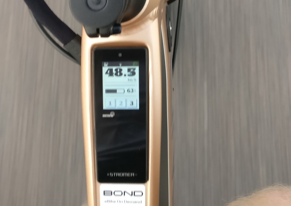 Mopopyörässä on seitsemän varsinaista polkupyörän vaihdetta ja kolme sähköavustuksen vaihdetta. Ykkösvaihde rajoittaa avustuksen 25 km/h nopeuteen ja toinen vaihde rajoittaa nopeuden jonnekin 25-40 km/h välimaastoon; en muistanut selvittää sitä tarkemmin. Nopeus ja valittu avustuksen vaihde näkyy hyvin rungossa olevasta näytöstä, vaikka se onkin vähän kaukana siitä, että pitäisi katsoa eteenpäin. Pyörässä ei ole soittokelloa, vaan kunnon sähköinen äänimerkki, joka on korviini ihan yhtä äänekäs kuin auton torvi. Pyörässä soisi olevan myös pienemmän kellon – töötti ainoana varoitusvälineenä on vähän raju näin polkupyörän selästä.