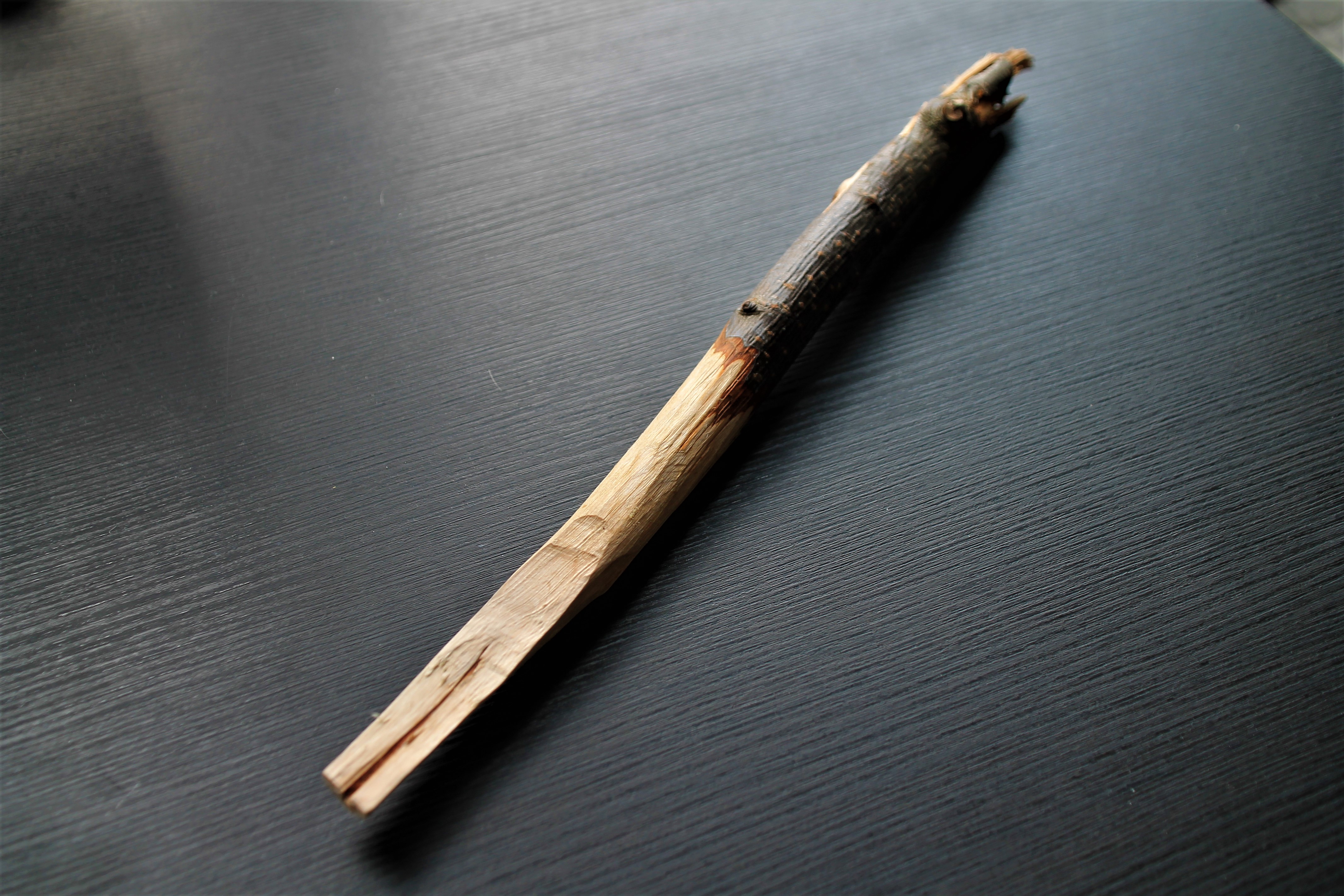 Hetken päästä kehitin tilanteeseen nähden parhaan ratkaisun: metsästin paksuhkon kepin, joka ei ollut vielä kauaa kuivunut maastossa. Vuolin kepin toisesta päästä kaarnat pois ja päästä jotenkuten litteän, jotta sillä sai edes jotenkin lusikoitua ruokaa pussista suuhun! Nimesin keppini Kolinaattor kolmetonniseksi, ja se tosiaan pelasti matkani.
