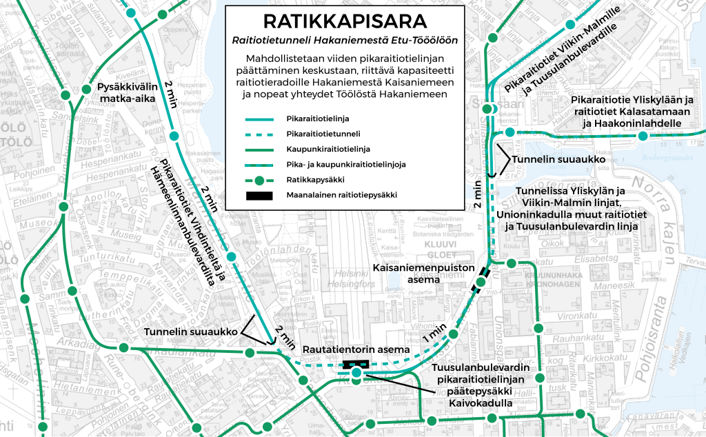 Ratkaisu: raitiotietunneli Hakaniemestä Etu-Töölöön