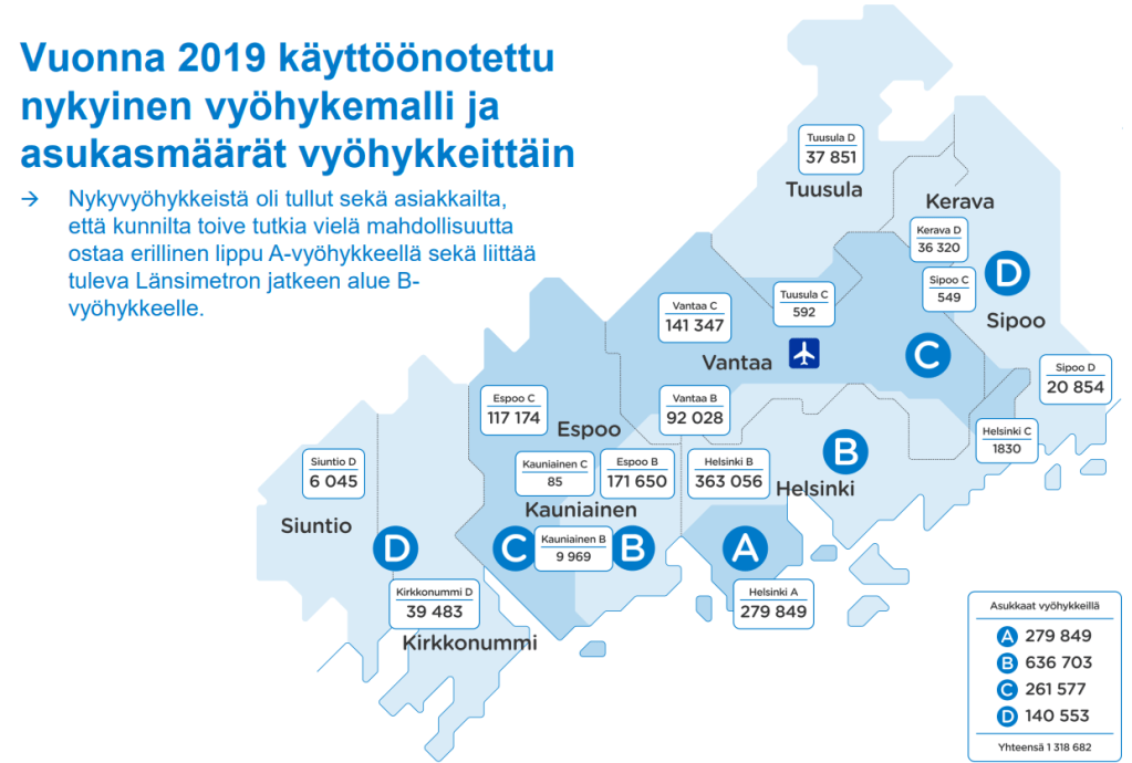Nykyisellä vyöhykejärjestelmällä matkustajalla on aina kahden vyöhykkeen lippu, mikä on huikea parannus vyöhykejärjestelmää edeltäneeseen kuntarajamalliin. Siinä matkat kuntarajojen yli menevät lyhyet matkat olivat merkittävästi kalliimpia kuin pitkätkin kunnan sisäiset matkat. Tämä ei ollut fiksua.