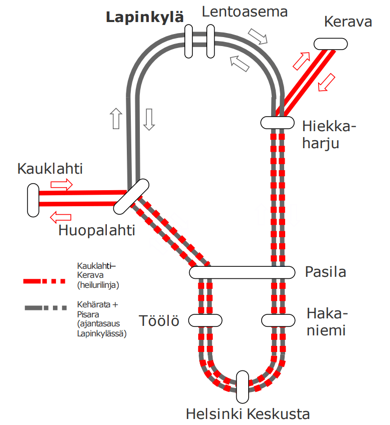 On tärkeää huomata, että Helsinginkadun asemalla pysähtyisi molempien kaupunkiraiteiden junat. Asemalle saapumisen jälkeen voisi suoraan jatkaa matkaansa kaikkien kaupunkijunalinjojen suuntaan. Pisaralla sen sijaan esimeriksi matkalla Hakaniemestä Leppävaaraan joutuisi kiertämään keskustan ja Töölön kautta.