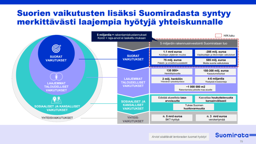 Suomirata Oy:n harhaanjohtava koonti hankkkeen hyödyistä.