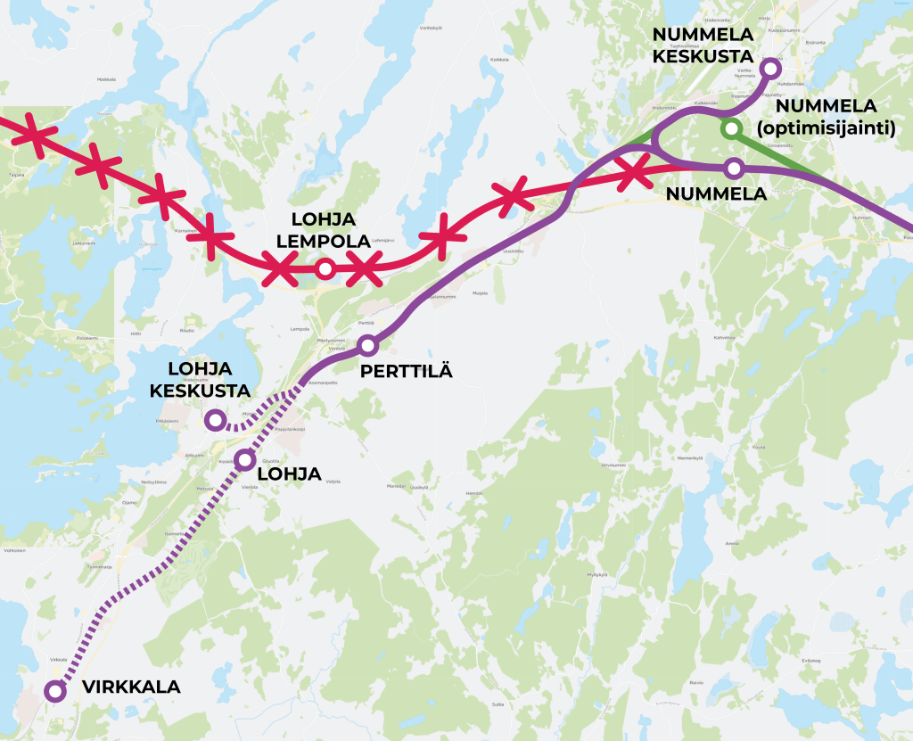 Lohjan lähijuna tulee kuitenkin toteuttaa viisaasti. Jos Nummelan asemaa ei voi enää siirtää pohjoisemmaksi, osa lähijunista tulee jatkaa Nummelan keskustaan Hanko–Hyvinkää-radalle. Lohjan lähijunat tulee kääntää myös Hanko–Hyvinkää-radalle Nummelassa ja uuden radan toteutus tulee katkaista Nummelaan. Lähijunan osalta olisi hyvä tietää, olisiko liikenteestä vastaava viranomainen LVM, HSL vai joku uusi alueellinen organisaatio.