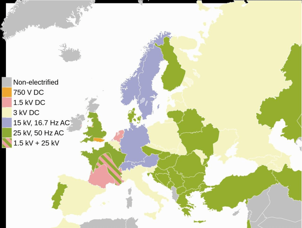 Eri maissa on päädytty käyttämään erilaisia sähköistysjärjestelmiä. Suomessa on käytössä ymmärtääkseni paras standardi: 25 kilovoltin vaihtovirta 50 hertsin taajuudella, joka on Euroopassa käytössä olevista standardeista vähähäviöisin. Kaikissa naapurimaissamme toimitaan eri tavalla: Venäjällä ja Virossa sähköistys perustuu 3 kilovoltin tasajännitteeseen, kun taas Ruotsissa ja Norjassa on 15 kilovoltin vaihtovirta 16,7 hertsin taajuudella (kolmannes 50 hertsistä).
