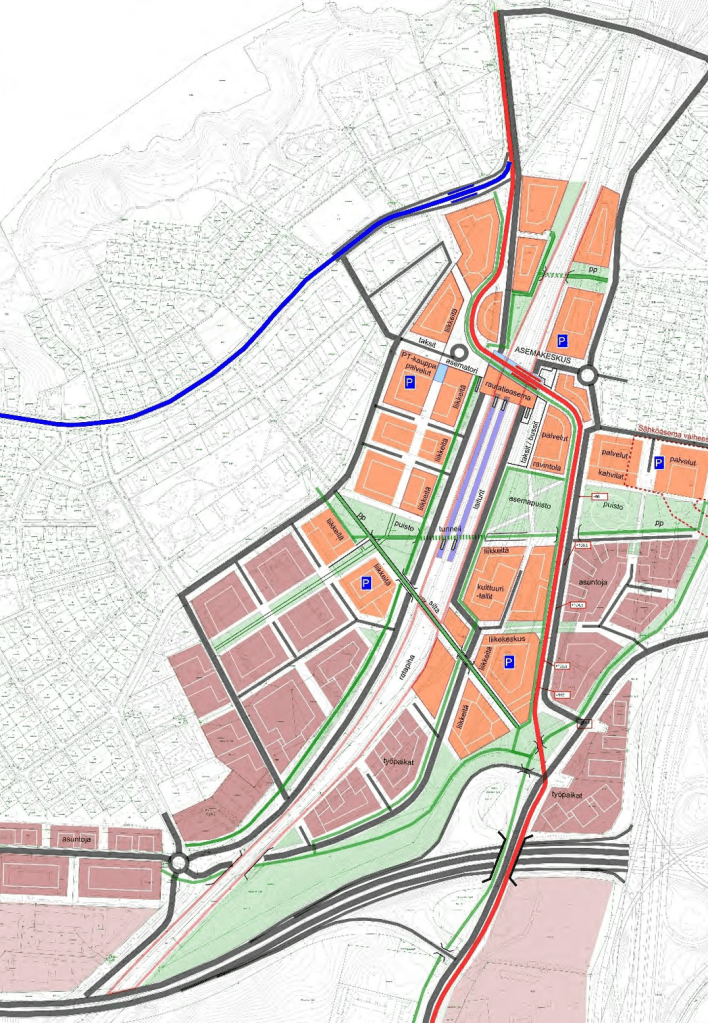- Hyvä toteuttaa nykyistä suorempana edes Lielahden ja Santalahden välillä, jotta kaukojunat voisivat nopeutua hieman