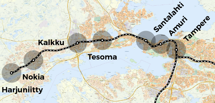 Nohevimmat lukijat saattavat tässä kohtaa ihmetellä, miksi en visioi uusia seisakkeita Santalahden ja Tesoman välille. Yleiskaavassa on kaksikin varausta: Hiedanranta ja Tohloppi.
